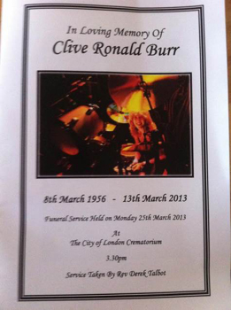Мемориальная служба по скончавшемуся 12 марта бывшему барабанщику IRON MAIDEN Клайву Бёрру прошла 25 марта в City Of London Crematorium, в Лондоне.
